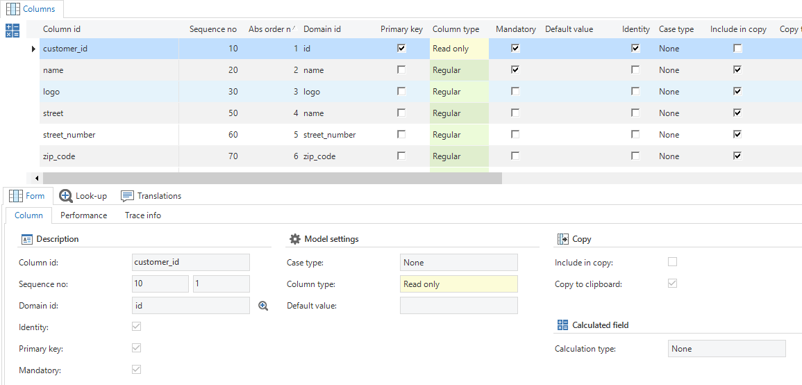 You can indicate for each reference whether it may or may not be used as a look-up. This can be different for each column. In addition, in the case of a specific look-up, the table settings, such as the look-up type, the column view, etc. can be overwritten.