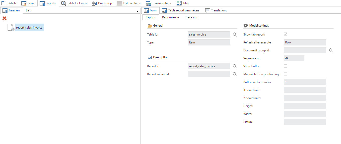 This is where the reports are linked to a table. How to create reports is described in paragraph 7.7.