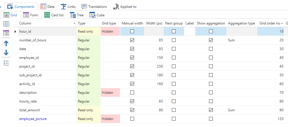 In the data component, it can be determined what has to happen with searching, filtering, sorting, prefilters and conditional formatting.