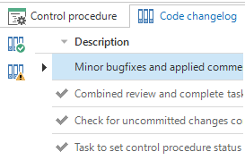 This will set the status of the control procedure to Review and create a changelog record. The code changelogs, including the code changes, can be found in the Code changelog tab page.