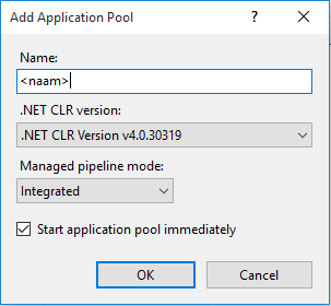 Give the Application Pool a suitable name related to the corresponding application to which this is going to be connected. Subsequently, choose the .NET CLR version for the Application Pool. Version 4.0 is connected to .NET framework 4.7 which is used by Thinkwise applications. The Managed pipeline mode can be set on Integrated.