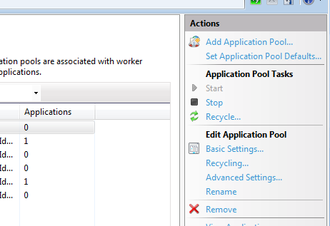 When enabled, a new Application Pool is started after a recycle and, when this is done, the old pool is stopped. In this way, active users do not need to wait for very long before they can continue. Via Windows' Task manager, what happens to the application pools during a restart process can be seen by keeping an eye on the w3wp.exe processes.