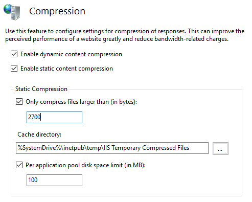After installing the Dynamic Content Compression, the functionality in IIS can be turned on for specific applications.