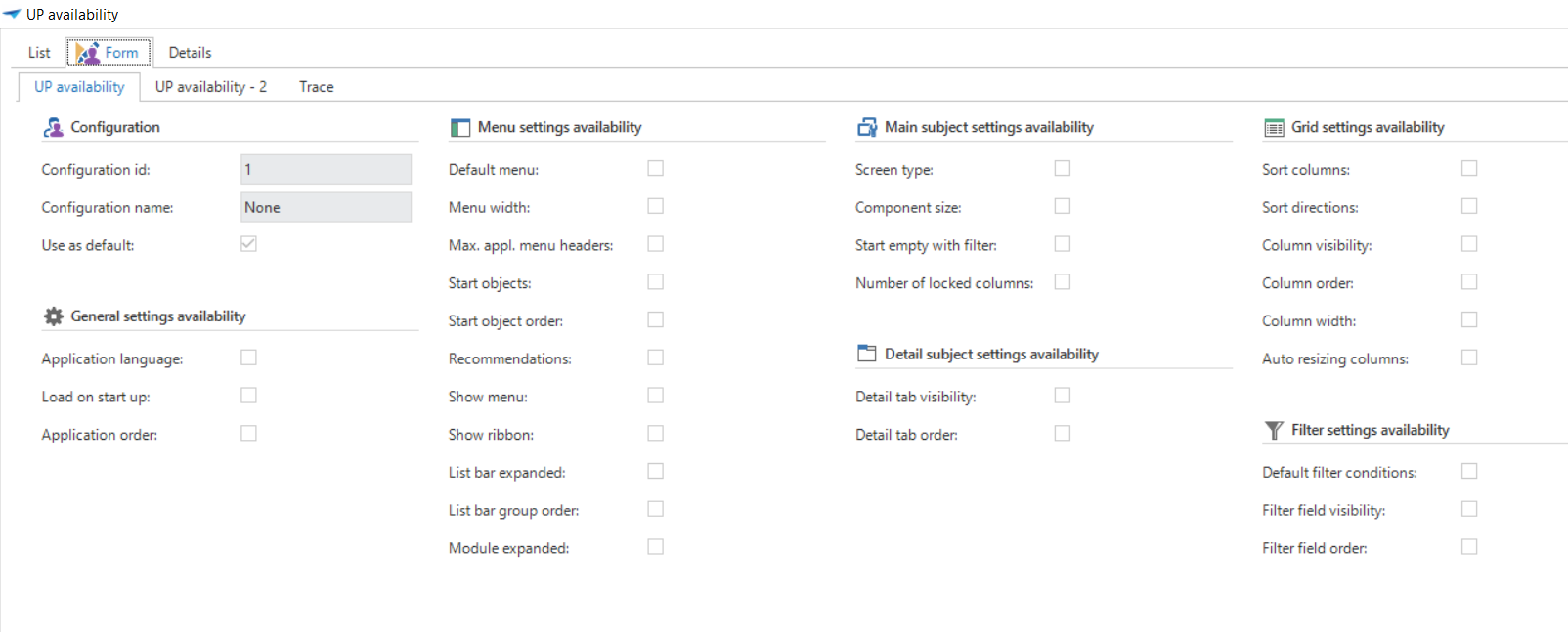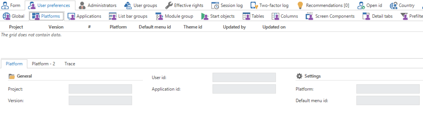 - None - No user preferences are stored and the user preferences ribbon is hidden.