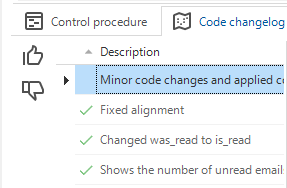 This will set the status of the control procedure to Review and create a changelog record. The code changelogs, including the code changes, can be found in the Code changelog tab page.