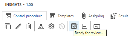 After creating or modifying business logic, the control procedure can be marked for review using the Ready for review task.