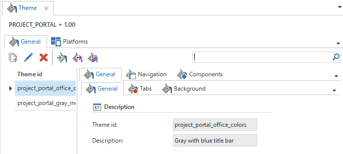 The theme (style) of the user interface is also defined in the model. A theme determines the colors, fonts and images that are used and is defined for all components of the user interface.