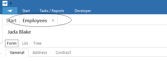 Where in the document component, the tab color can be set for colors opened from the menu. The colors for the background of the tabs within these main tabs are set here, shown in turquoise in the figure below.